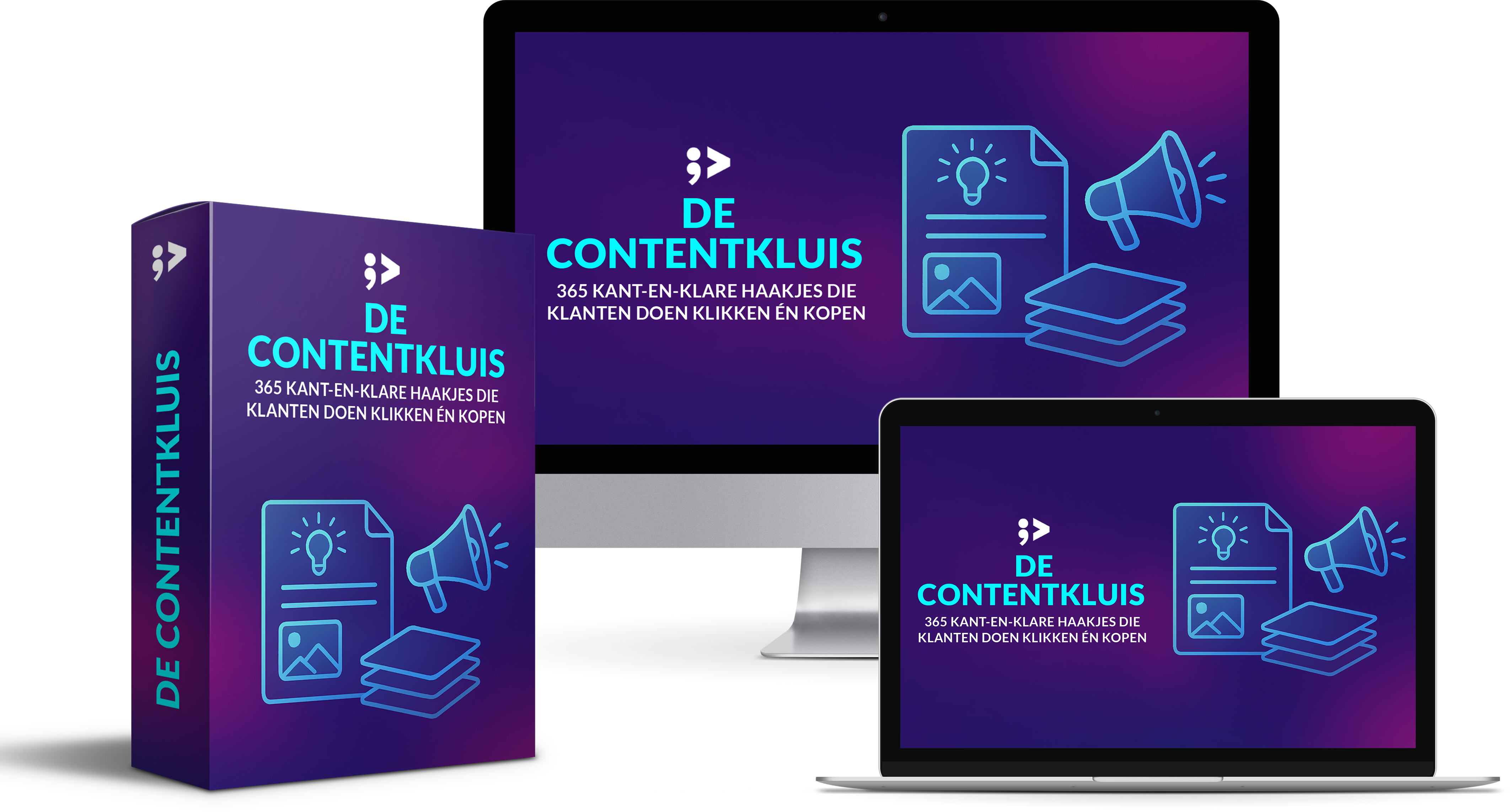 Je krijgt 365 haakjes en formats die je letterlijk kunt kopiëren en plakken voor je social posts. Je hoeft nooit meer blanco naar je scherm te staren. Je opent deze schatkamer, kiest een haakje, vult je topic in, en je hebt in 15 minuten een post die klanten triggert omdat ze voelen: “Die weet waar ze het over heeft.”