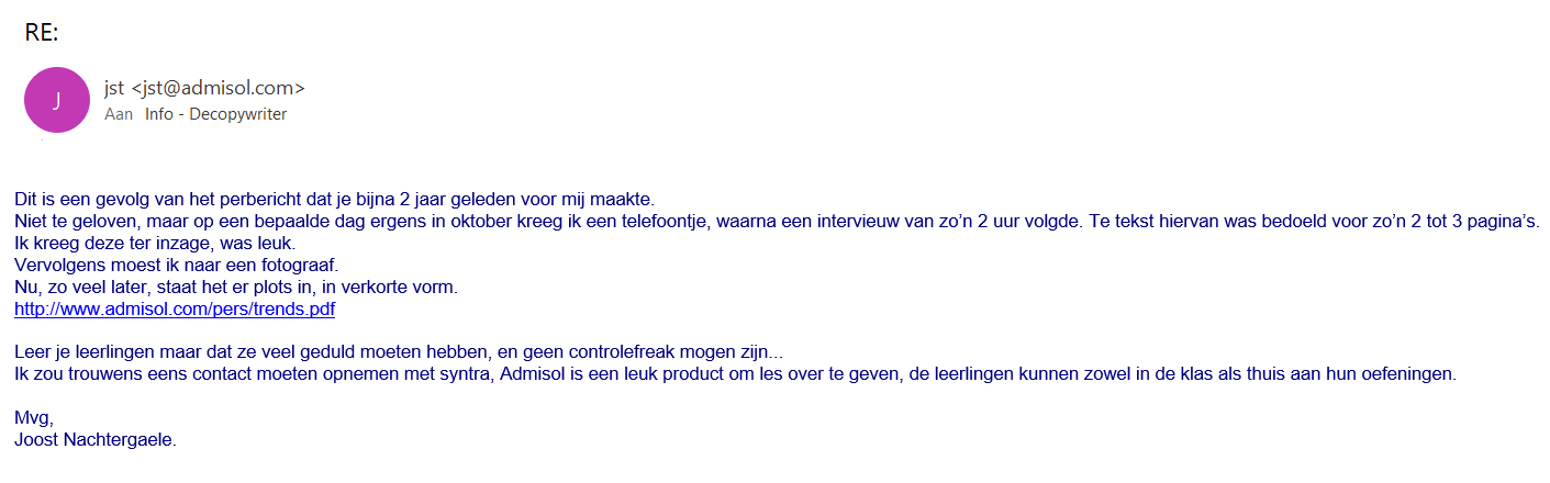Daar ben ik niet zo voor. Ik geloof veel meer in waarde leveren en mensen helpen.