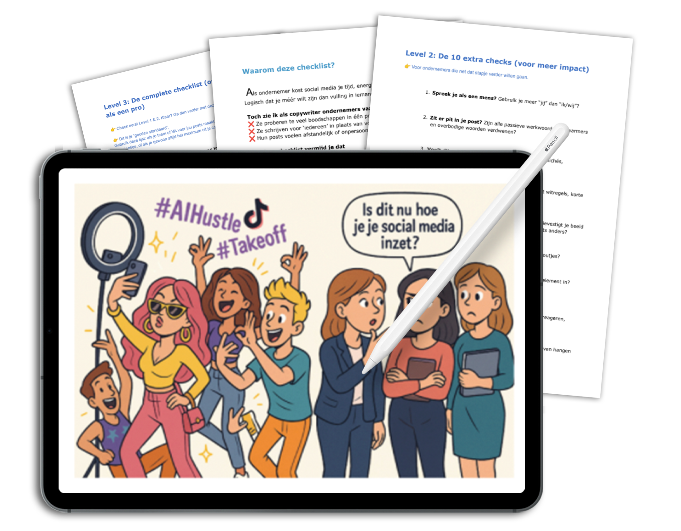 Deze checklist is je snelle kwaliteitscheck: of je nu zelf schrijft, ChatGPT gebruikt of je posts laat maken door een teamlid, een VA of een bureau. Je spaart tijd omdat je sneller ziet wat werkt en wat niet. Je post bewuster, met meer zelfvertrouwen en met meer impact.